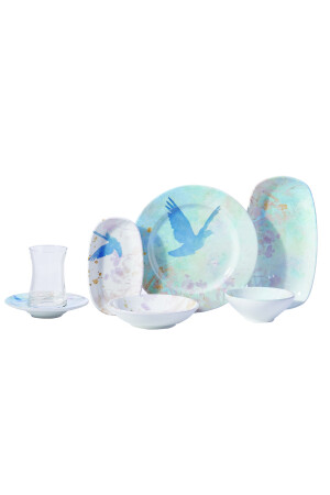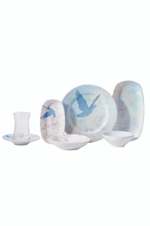 Çiğdem Blue Model 12 Kişilik 21 Parça Kahvaltı Takımı Kahvaltı Seti[ Mavi 12]