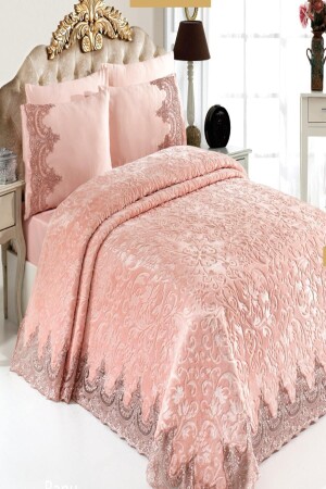 Krem Çift Kişilik Fransız Güpürlü Çeyizlik Battaniye Takımı