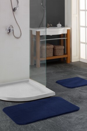 MNZ-Ultrasoft Plain Navy Blue 3-piece حمام السجادة المطبخ مجموعة غير المنزلق الجلد على أساس غسيل حوض المياه مجموعة BnyUltra