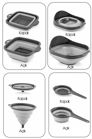 MNZ-4- Piece Folding Strainer Set 4 Piece Kitchen Set Accordion Rice Strainer Funnel Badya Dowry Set