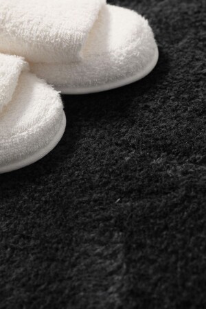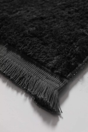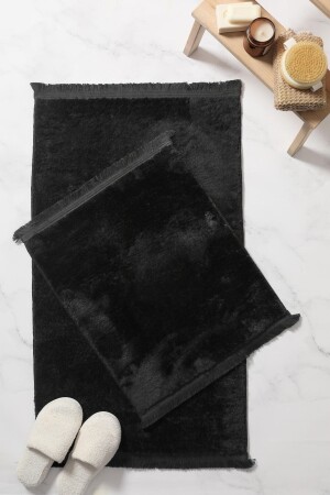 Lazer Kesim Peluş 2'li Oval Siyah Banyo Paspas Takımı