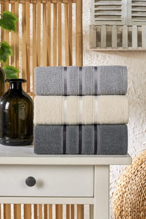 مصنوع من حبل القطن بنسبة 100٪. يحتوي على 3 مناشف، 1 لون لكل. محتويات الحزمة: 1 رمادي خفيف، 1 كريم، 1 أنترات