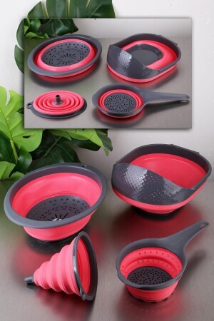 4'lü Katlanır Süzgeç Seti 4 Parça Mutfak Seti Akordiyon Pirinç Süzgeci Huni Badya Çeyiz Set