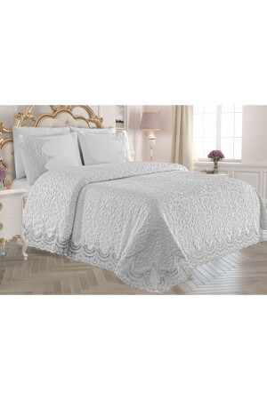 Krem Çift Kişilik Fransız Güpürlü Çeyizlik Battaniye Takımı