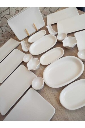 64 Parça 12 Kişilik Platin Modern Krem Kahvaltı Takımı