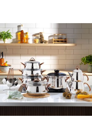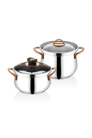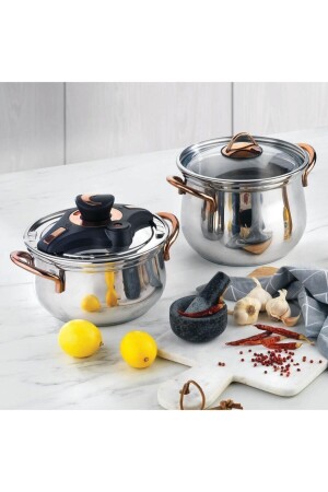 مجموعة من الـ MNZ-Alia Dowry مجموعة عدد القطع: 18 لون: مجموعة من النحاس تتضمن: - 18 سم صلصة عميقة - 22 سم 4.5 لتر مخزن ض