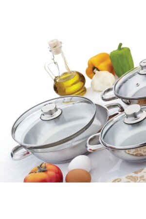 مجموعة من الـ 3 من الـ MNZ-Steel Pan مع غطاء زجاجي 16/18/20cm