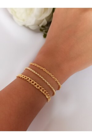 مجموعة من الـ MNZ-Gold Plated Chain Bracelet - لديها سلسلة امتداد 16 سم + 5 سم. تتكون من 3 أساور منفصلة. لديها غطاء خاص ضد التلو