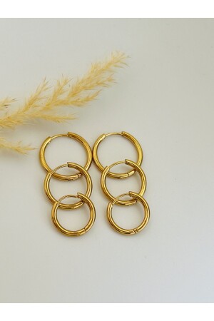 مجموعة من ثلاث أذان من الفولاذ ذو الذهب 12 ملم - 15 ملم - 18 ملم