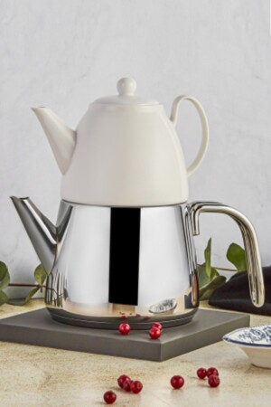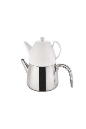 Nv10055 Porselen Demlikli Beyaz Emaye Çaydanlık Takımı