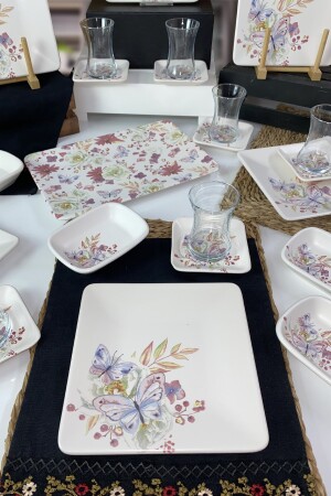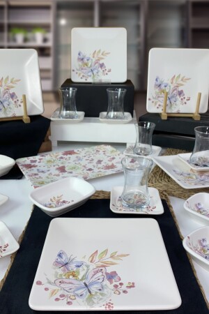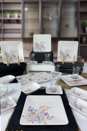 MNZ-6 طوابع الإفطار المربع 20 سم 6 قطع طوابع الشاي المربع 6 أكواب الشاي الزجاجية 4 طوابع الإفطار المستقيم 13 سم 1 طواب