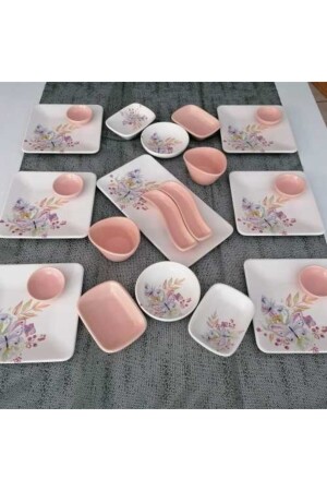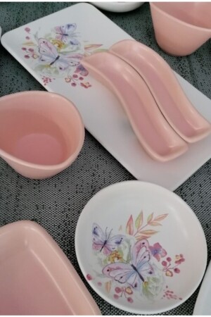 مجموعة من طعام الإفطار من طراز MNZ 23 قطعة لـ 6 أشخاص طائر فراشة وردي متطفل dmt20202323