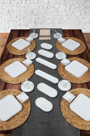 64 Parça 12 Kişilik Platin Modern Krem Kahvaltı Takımı