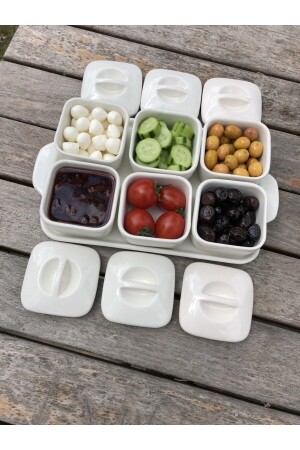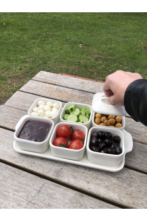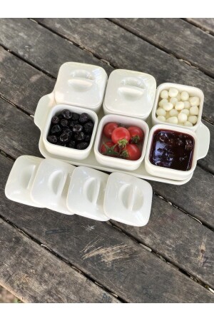 6 Bölmeli Kare Kapaklı Tepsili Lüks Kahvaltılık Modern Sunum Seti Ve Saklama Kabı TYC00811401678