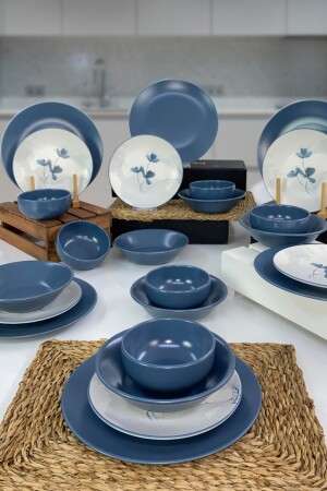 مجموعة من طعام العشاء من طراز MNZ لـ 6 أشخاص 24 قطعة زرقاء EGEM001