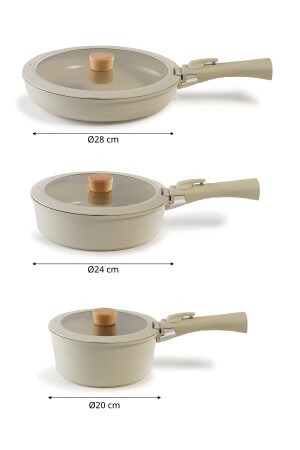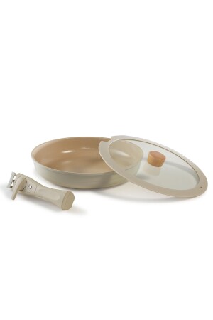 Bio Granit 7 Prç Istiridye Fildişi & Gold Kulp Tencere Ve Tava Seti EVTGR7PRÇEZMFİLDİŞİ