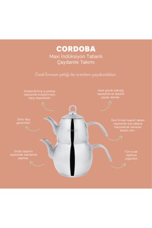 مجموعة مجموعة الشاي من MNZ-Emsan Cordoba حجم الشاي: 1.1 لتر + مدخن الشاي: 2.1 لتر مواد: فولاذ فولاذ: خصائص غسيل الأطب