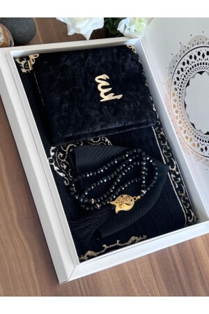 محتوى MNZ-مجموعة: 1 سجاد صلاة بالخامة على شكل كعبه، 1 ياسين شريف، 1 روزار بلورية، 99 قطعة، 1 كأس صلاة