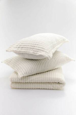 MNZ-Merinos Moderns Line 3 Piece Blanket Set - Bone Blanket Size: 220x240 2 مقالات وسادة حجم: 50x70 100% بوليستر آلة قابل للغسيل عند