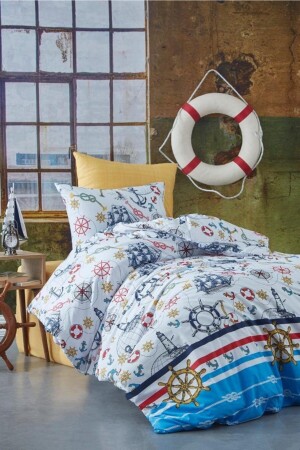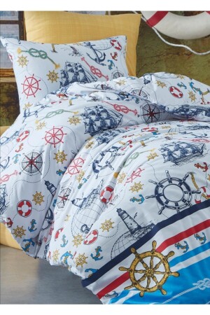 مجموعة ملابس ملابس ملابس واحدة ذات نمط MNZ-Anchored Single Duvet Cover Set WITH Elastic SHEET color:WHITE-BLEO الحزمة تتضمن غط