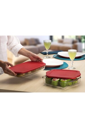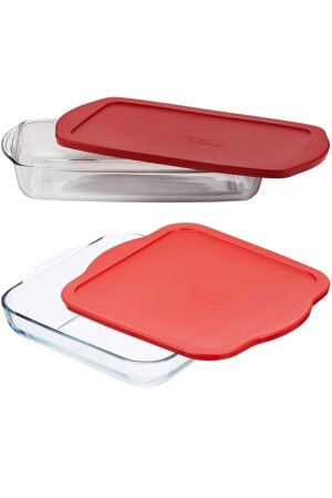 MNZ-59034&59006 Paşabahçe مجموعة من 2 مربع ومستطيل زجاج Pyrex مع غطاء · Paşabahçe 59034 حجم كبير 32 سم بير