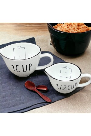 مادة مجموعة كوب القياسات السيراميكية: حجم السيراميك: كبير: 500 مل صغير: 250 مل حجم: كبير: 17.2 x 12 x 9 سم صغير: 14 x 9.4 x 7 سم ي