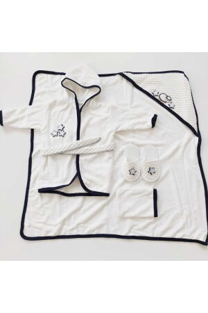 Çocuk Bornozu Kapüşonlu Beyaz %100 Pamuklu