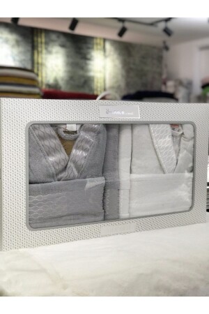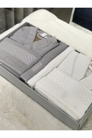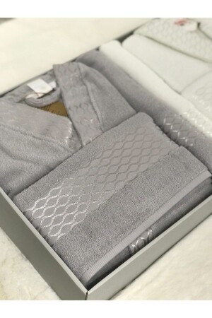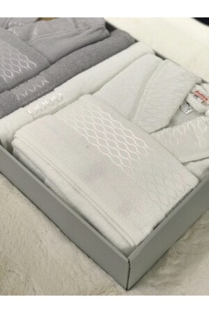 Eda 8 Parça Kutulu Nakışlı Bornoz Seti Bornoz Takımı Çeyiz Seti