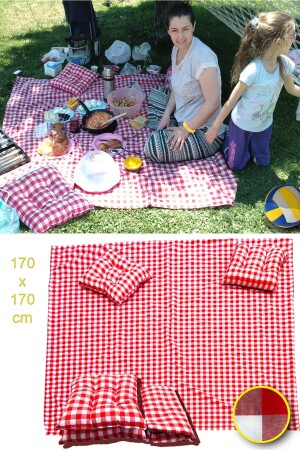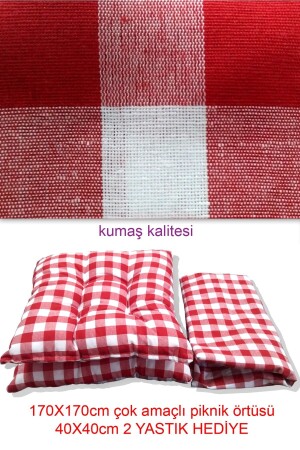مجموعة من ملابس النزهة الحمراء ملابس النزهة الحجم الكبير ملابس الطاولة 170x170 سم 2 أوساد هدية (40x40 سم)