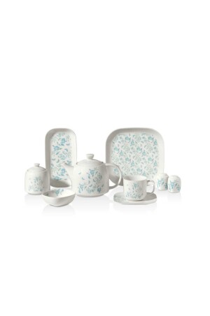 MNZ-New Bone 30 Pieces - الإفطار المجموعة لـ 6 أشخاص المجموعة المحتوى: 6 طبقات خدمة، 6 كوبات الشاي، 6 كوبات الشاي،