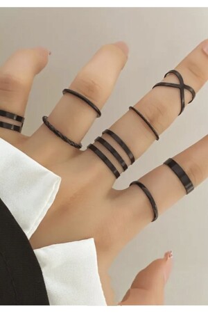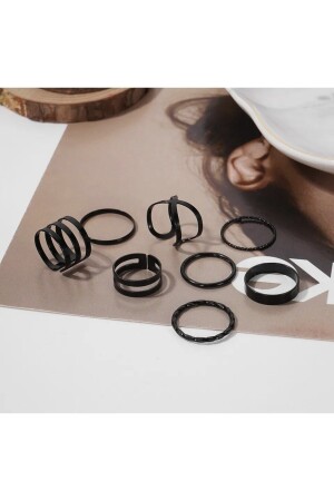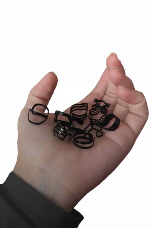 مجموعة من 10 حلقات مفصلة سوداء للنساء من MNZ - 2898