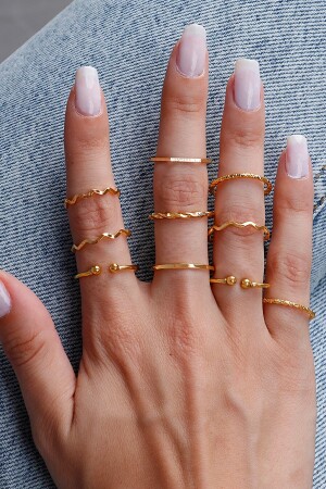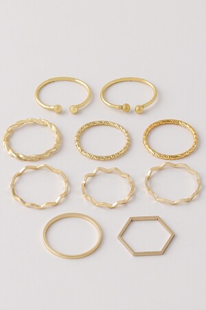 مجموعة من 10 حلقات من اللون الذهبي 0030