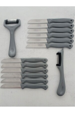 مجموعة من 12 سكين للقص الفاكهة والخضروات و 2 طلاءات، مجموعة من 14 رمادية