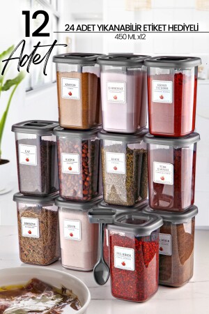 12'li Kapağı Kendinden Kaşıklı Ve Etiketli Baharatlık Seti 300 ml Gold Etiketli Cam Baharat Takımı