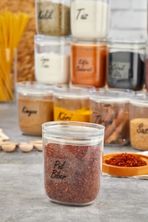 12'li Kapağı Kendinden Kaşıklı Ve Etiketli Baharatlık Seti 300 ml Gold Etiketli Cam Baharat Takımı