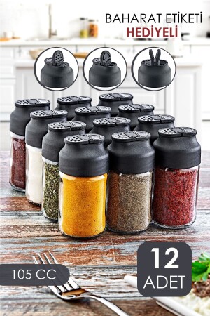 12'li Kapağı Kendinden Kaşıklı Ve Etiketli Baharatlık Seti 300 ml Gold Etiketli Cam Baharat Takımı
