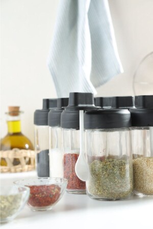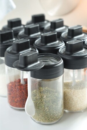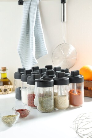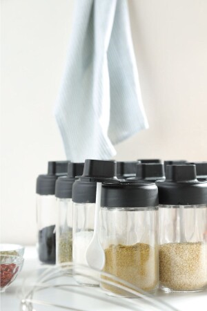 12'li Kapağı Kendinden Kaşıklı Ve Etiketli Baharatlık Seti 300 ml Gold Etiketli Cam Baharat Takımı