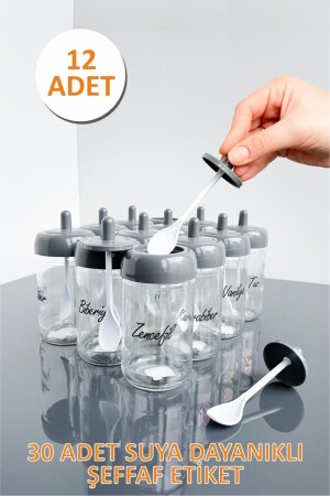 12'li Kapağı Kendinden Kaşıklı Ve Etiketli Baharatlık Seti 300 ml Gold Etiketli Cam Baharat Takımı