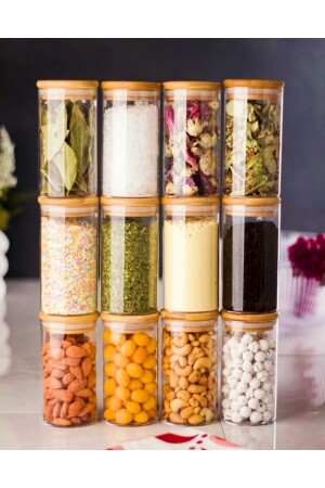12'li Kapağı Kendinden Kaşıklı Ve Etiketli Baharatlık Seti 300 ml Gold Etiketli Cam Baharat Takımı