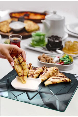 مقاس: 29 سم × 34 سم المواد: 4 مم زجاج محمّد • زجاج محمّد مقاوم للكسور والضرر • سطح مقاوم للحرارة وقابلا للقطع.