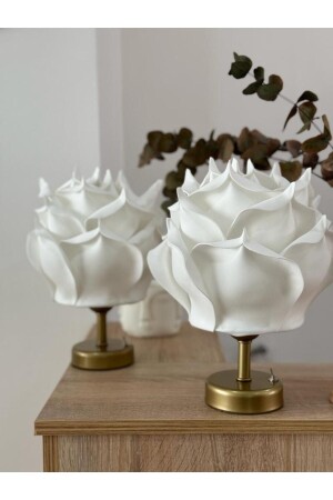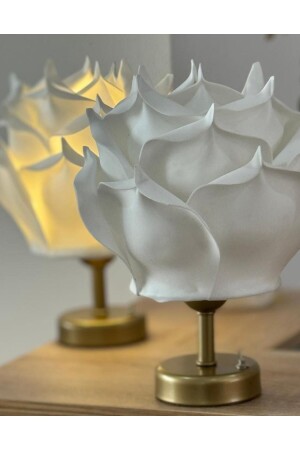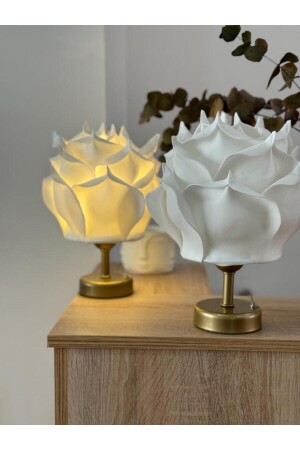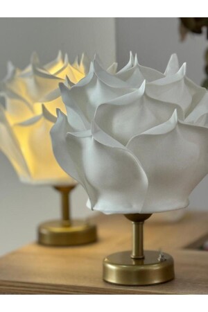 Dekor Yapay Eva Çiçeği Kablosuz Masa Lambası Beyaz Gold