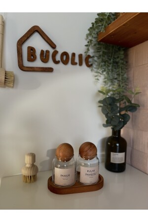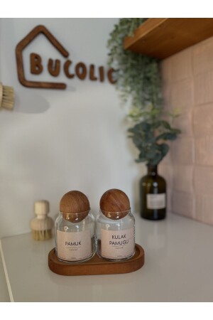 محتوى: 2 وعاءات قطنية زجاجية مع غطاء خشبية، 1 قاعدة شجرة بلوط صغيرة قيامة الحجم: 9x17 سم وعاء زجاجي: قطر أ