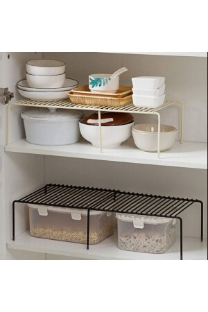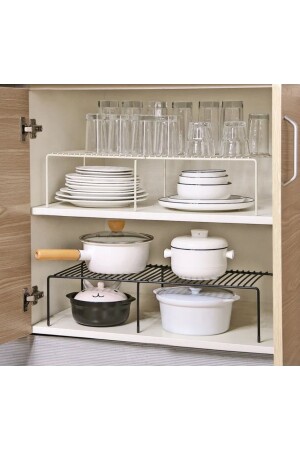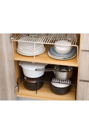 مجموعة من 2 رفات قابل للتوسع قابلة للتعديل المجلس منظمة المطبخ منظمة المطبخ بيج-أسود