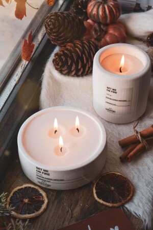 مجموعة من 2 شموع صويا ذات رائحة بحرية في وعاء زهرة من الخرسانة البيضاء