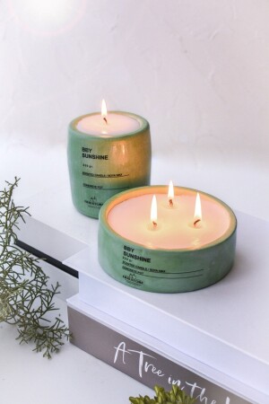 مجموعة من 2 شموع صويا ذات رائحة ليفندرا في وعاء خرساني أخضر