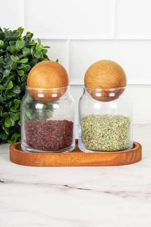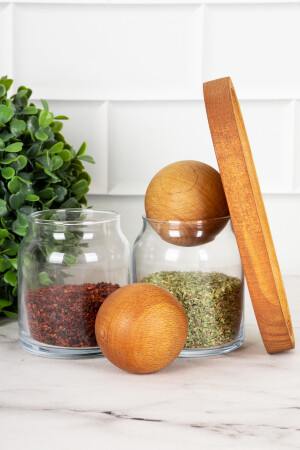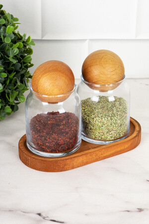 مجموعة من 2 صناديق زجاجية مع غطاء سطح الخشب و شاكر العطور الخشبية 300 ملي لتر DNS-2listntmini