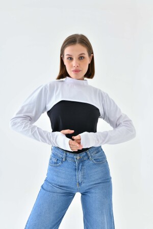 MNZ-Turtleneck عنق عنق عنق حشية حشية حشية حشية عنق عنق قميص عنق عنق عنق جسمية بوليرو أبيض وأسود