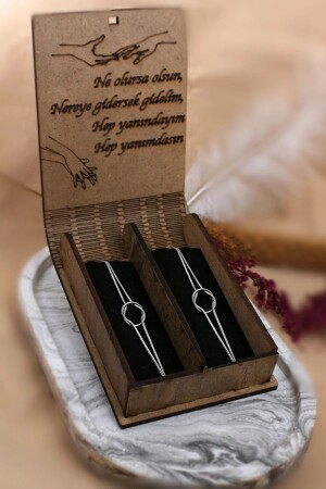 مجموعة من 2 عقدات من النواة الفضية والذهبية معصم حبيب مع صندوق هدية من الخشب