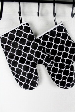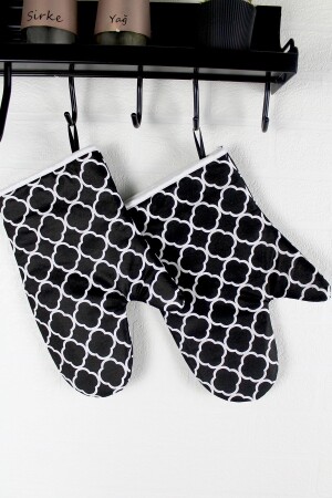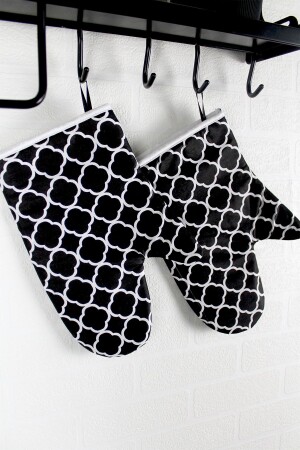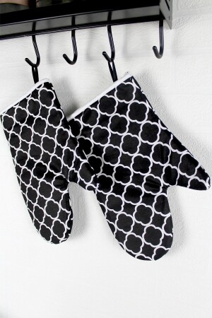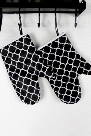 مجموعة من 2 قفازات فرن المطبخ المقاومة للحرارة و حلقة سوداء