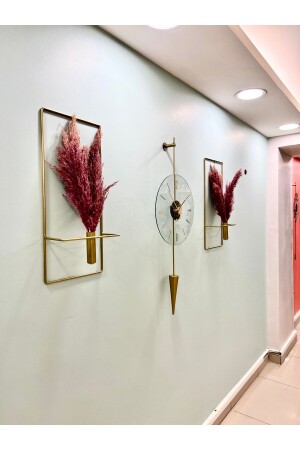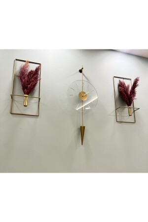 مجموعة من 3 أجهزة من الذهب في غاليليو - ساعة جدارية زجاجية معدنية أزياء حديثة